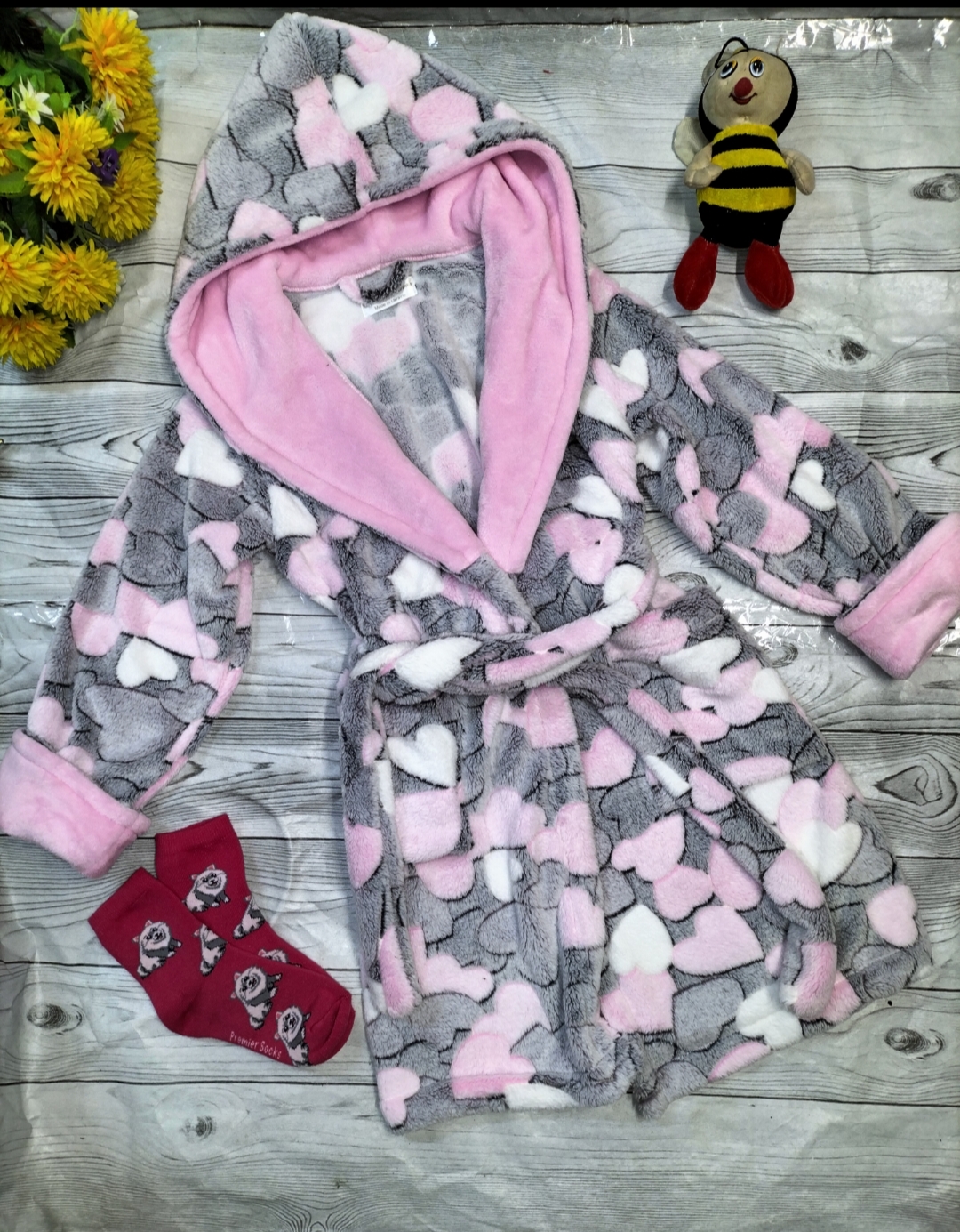 Халат дитячий виконаний з махри велсофт. Дуже теплий та м'який.