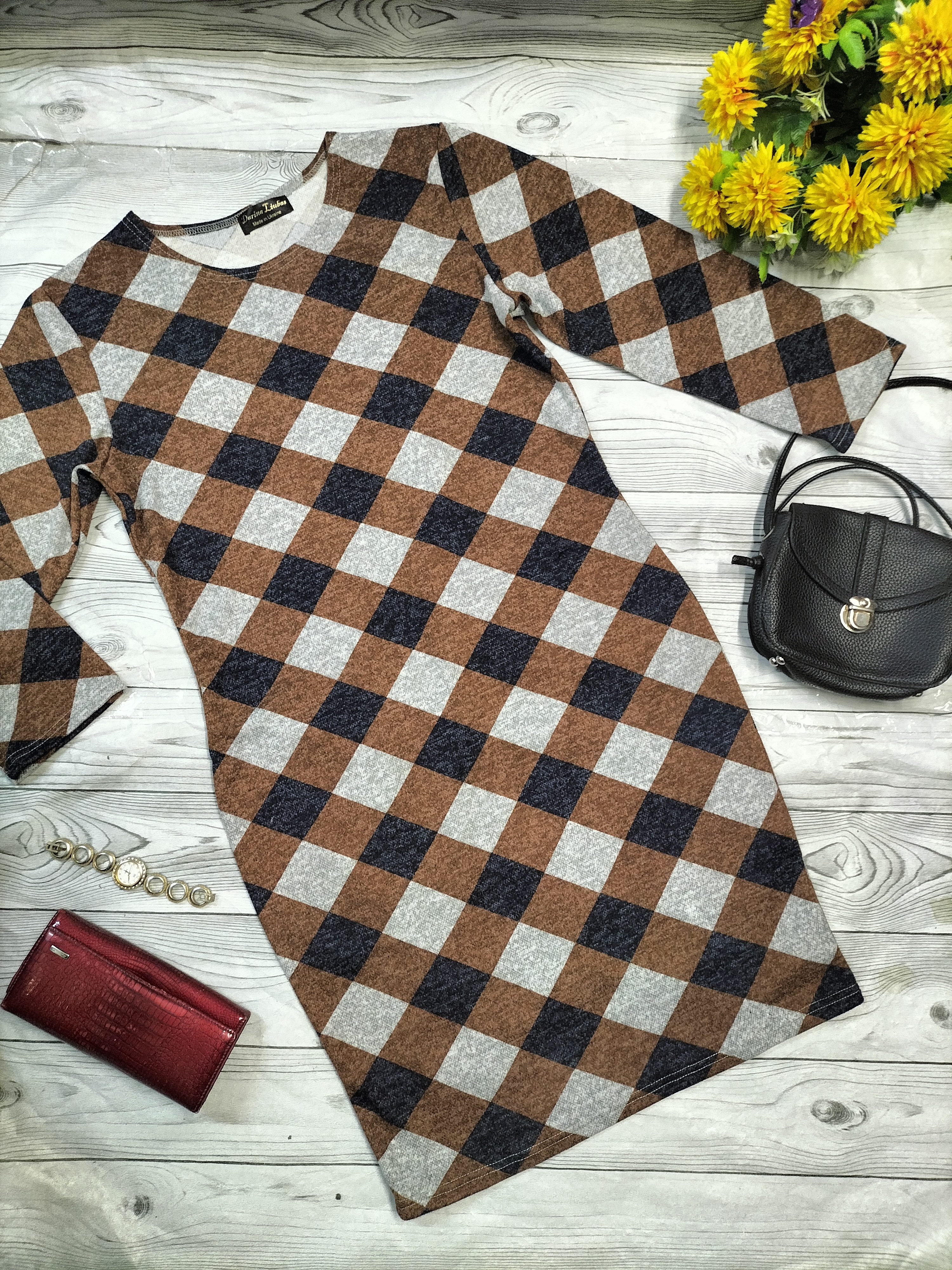 Сукня жіноча виготовлена з трикотажної тканини.  Горловина кругла, рукав 3/4. Гарно підходить як для свята, так і повсякдення.